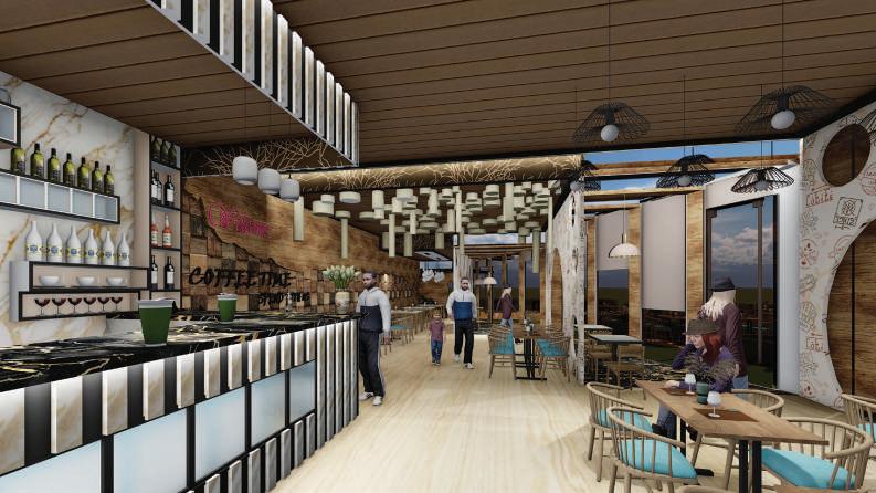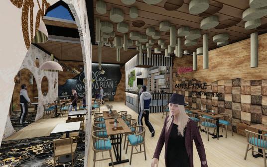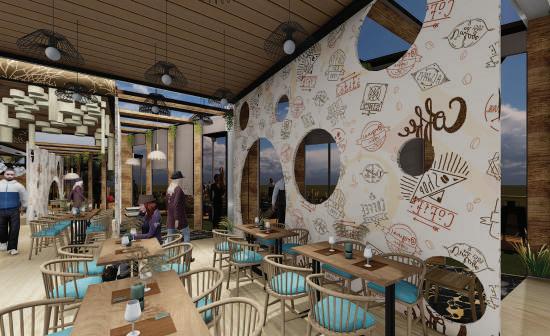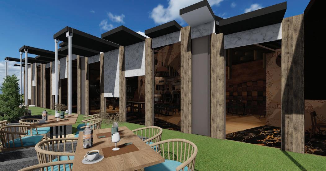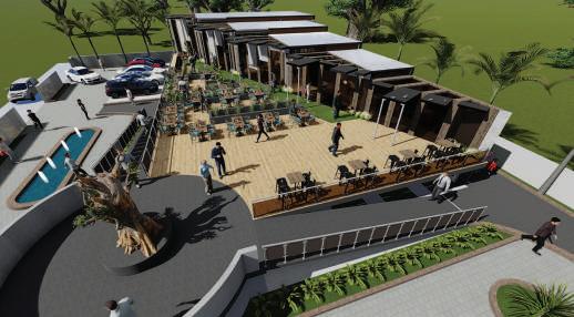 1.This cafe is in the style of rustic style , and comes to oor plan this cafe capacity overall 180 to 200 peoples at a time to spend indoor and outdoor areas