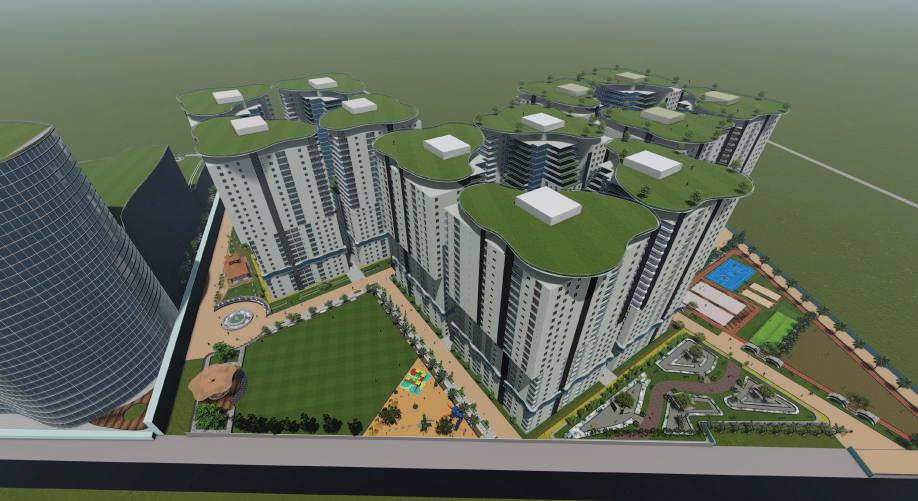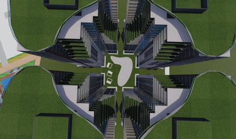 individual blocks and develops open roof gardens for each individual centre of 4 individual blocks