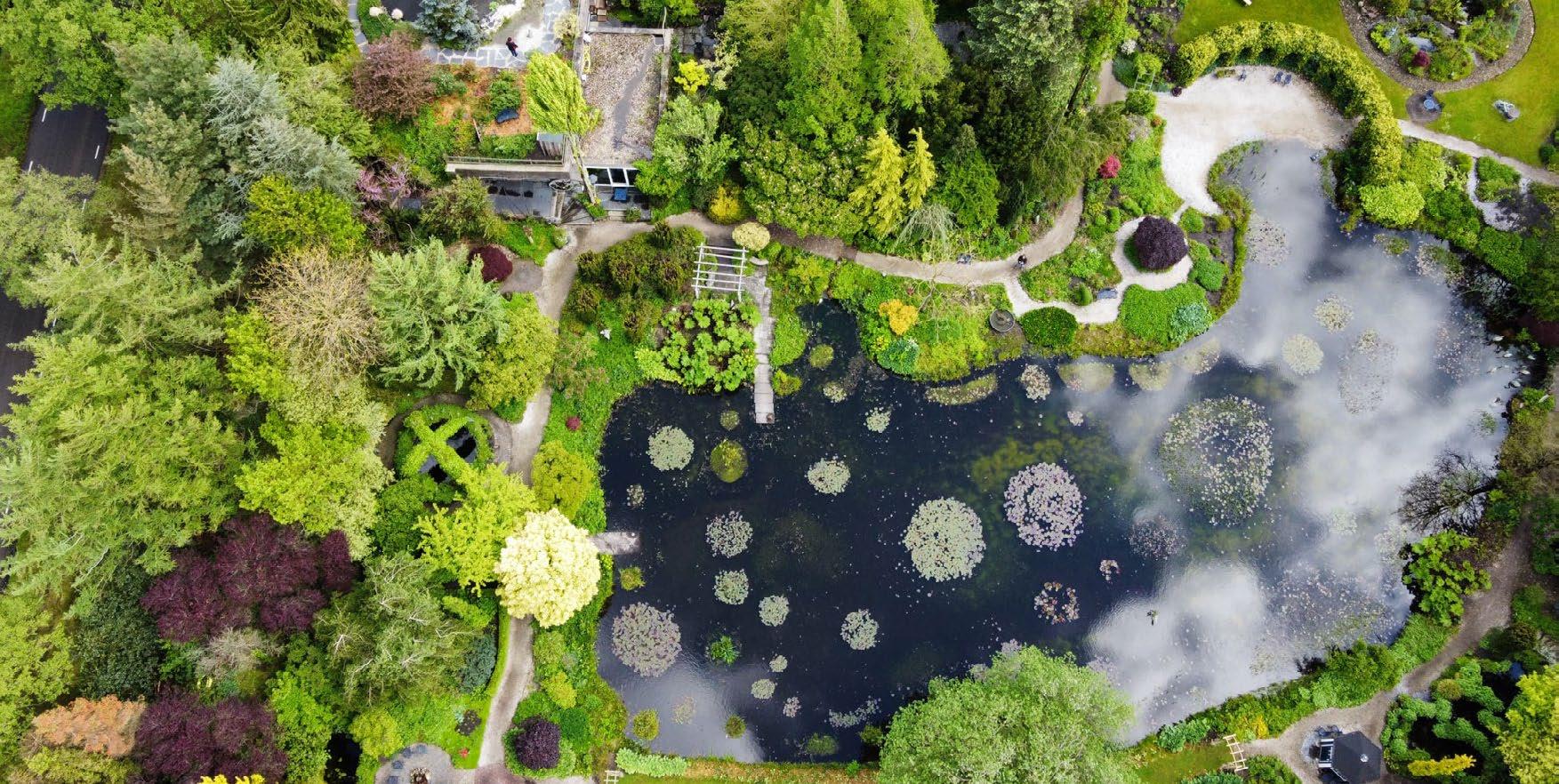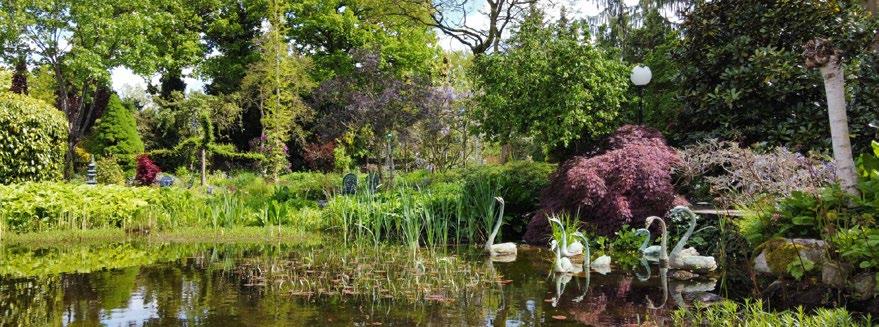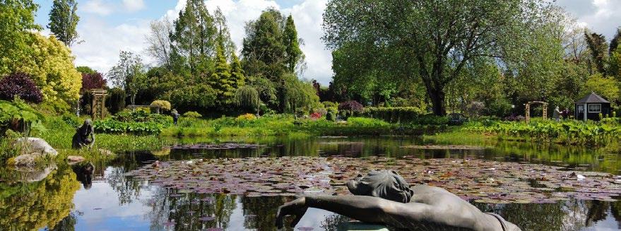 Op een oppervlakte van zo’n 2 ha. liggen rondom 3 grote natuurvijvers ruim 30 kleine tuinen met daarin zo’n 50 grote en kleine vijvers. In iedere tuin zijn zitjes om heerlijk van de rust, geuren, en kleuren te genieten. Er is veel te zien, kabbelende beekjes, watervallen, beelden, en in de tuin staan vele verschillende soorten vaste planten, heesters en bomen. Vanaf de daktuin heeft de bezoeker een schitterend uitzicht over de Vijvertuinen.