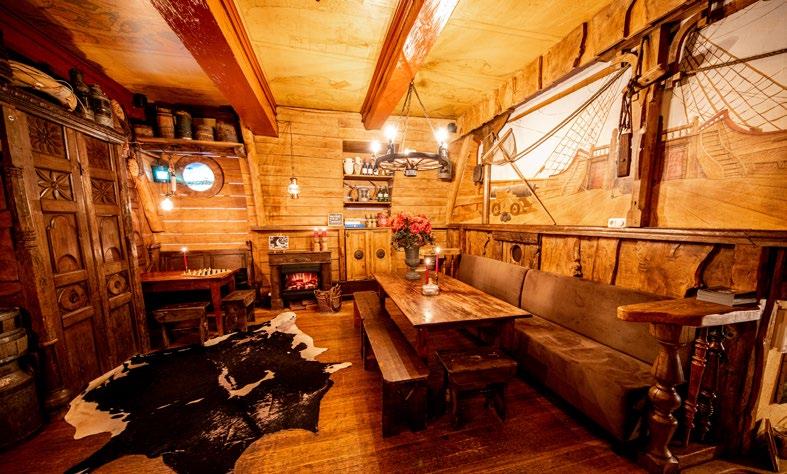 Bij binnenkomst stap je aan boord van een nagebouwd handelsschip van de Hanzestad Elburg, het pand dateert al van 1765. Het is nu authentiek in een modern jasje. Schilderijen geven vanuit de kajuit uitzicht op de punt van de boot. Kleine, ronde raampjes creëren een lichtinval die je normaal aan boord ook zou ervaren.