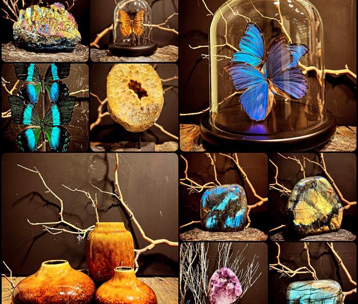 In de winkel kun je bij ons ook terecht voor mooie kristallen, mineralen, vlinderstolpen en een deel van de industriële meubelen. Mooi voor jezelf maar ook zeker de leuke kleine cadeautjes voor iemand anders.
