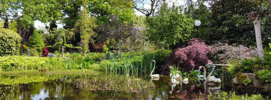 Mei: bomen, bollen en de rotsplanten in bloei, vanaf begin mei de kikker-concerten JuniAugustus: vele waterlelies in bloei AugustusSeptember: borders in bloei, vlindertijd, vlammende herfstkleuren