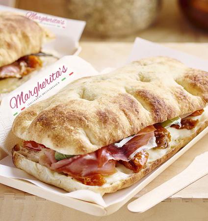 En eet u liever een Italiaanse belegd broodje? Dan komt u niet voor niets. Prachtig rustiek brood wordt belegd met Coppa di Parma, Prosciutto di Parma, Mortadella, en de fijnste kazen. Maar Margerita maakt ook heerlijke tosti’s. U kunt overigens kazen en charcuterie ook per gewicht verpakt kopen.