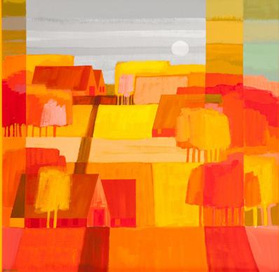 Ton Schulten schildert homogene schilderijen die geïnspireerd zijn op het coulisselandschap van Twente.