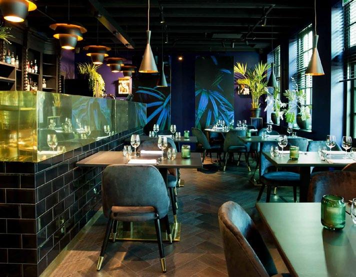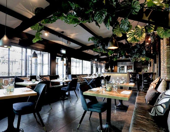 U wordt ontvangen in een charmante sfeer en neemt u plaats op de leren bank in de serre, grenzend aan café en restaurant met uitzicht op ‘Hugo Seafood’, een open keuken met een uitstalling van diverse vissoorten.