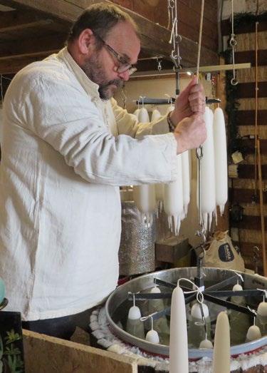Eigenaar Toon Verschuren werkt In d’n kaarsenstal waar hij ambachtelijke kaarsen dompelt, het oude ambacht in leven houdt en gepassioneerd over het vak en de ambachtelijke kaarsen praat.