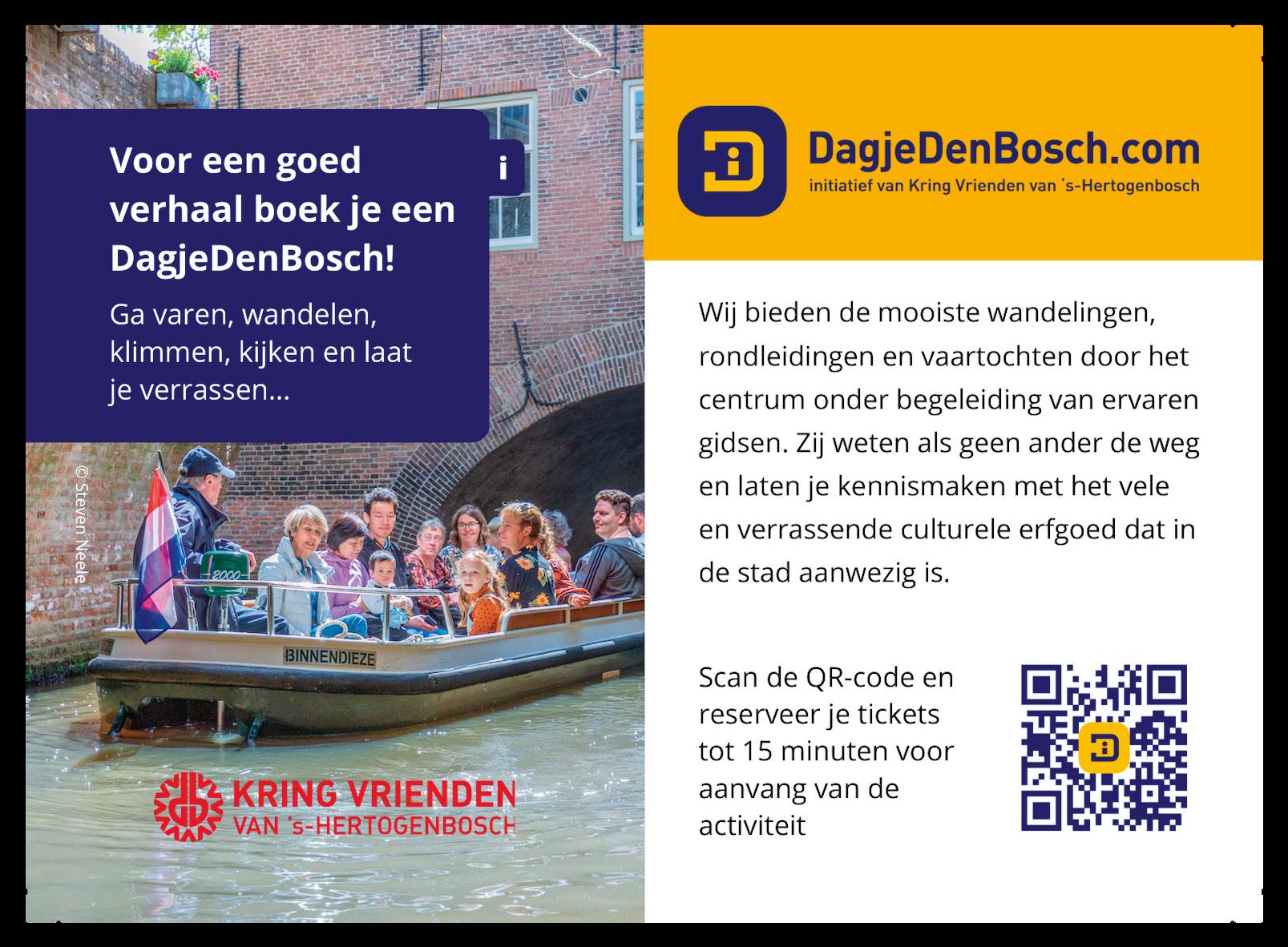 gebieden in en pompte ze leeg. Zo kon hij met zijn leger 's-Hertogenbosch uiteindelijk veroveren. Vandaag ontdek je dit stukje geschiedenis tijdens een vaartocht over de Binnendieze of wandelend langs mooie natuurgebieden en opgeknapte vestingwerken zoals de vestingwal.