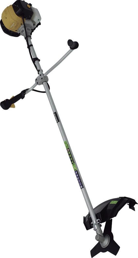 Motor de 2 tiempos de 52.8 cc y 2.1 Hp. Barra de 28 mm, encendido rápido. Incluye arnés, disco de tres puntas y cabezal semiautomático.