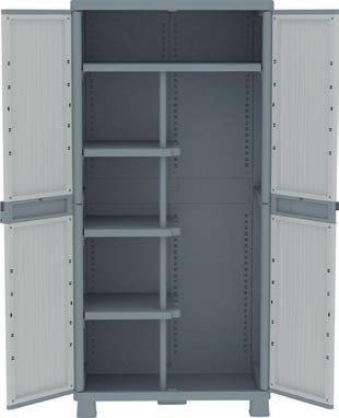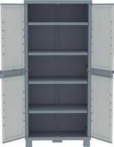 Estantería para uso exterior e interior. Muy resistente, nivel de anti-corrosión 3 veces superior al galvanizado. 5 estantes de polipropileno resistente a los rayos UVA. Color galvanizado. 100 kg/nivel. ReferenciaMedidasPVP