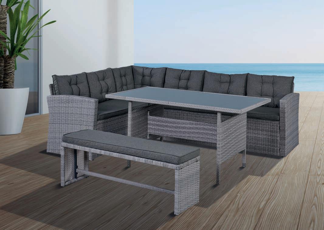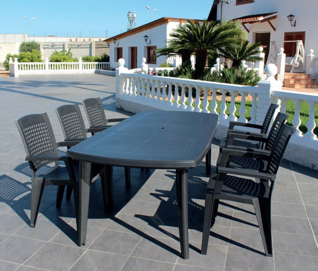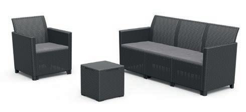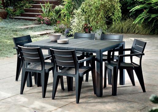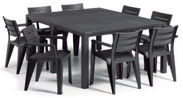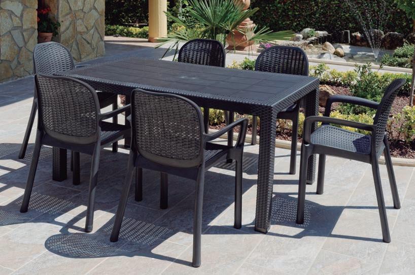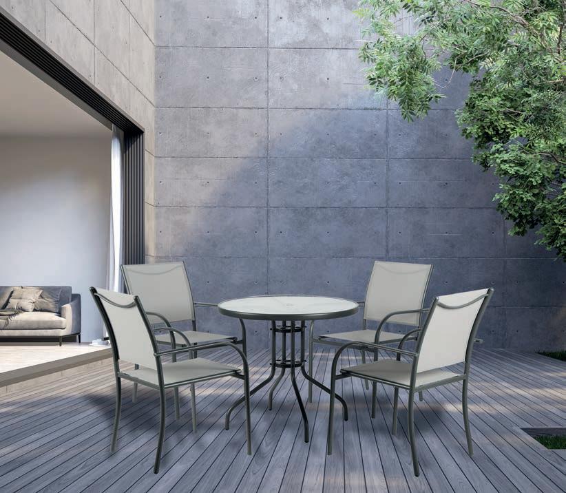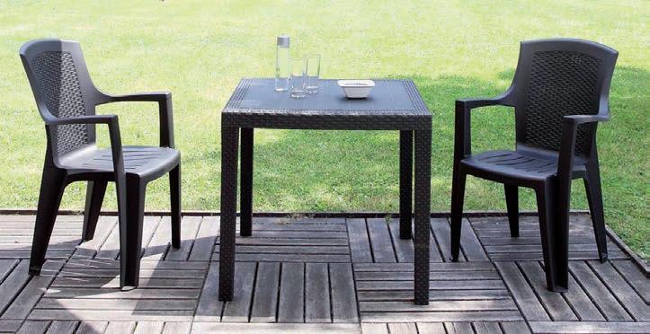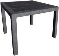 SILLA ACERO RATÁN SINTÉTICO 23003774 Medidas 54x61x73 cm. Color gris antracita. 29’95 MESA ACERO CRISTAL