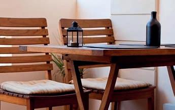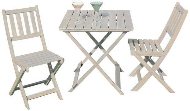 Fabricado en madera tropical FSC Acacia conacabado decapé. Mesa plegable 70 x70 cm + 2 sillas plegables. 199’95