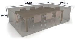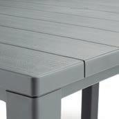 Sobre de PSPC, material similar al polywood que imita la madera y no necesita mantenimiento. Estructura de aluminio color gris antracita. 200-270x100cm.