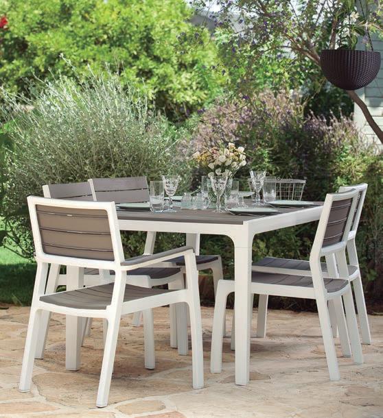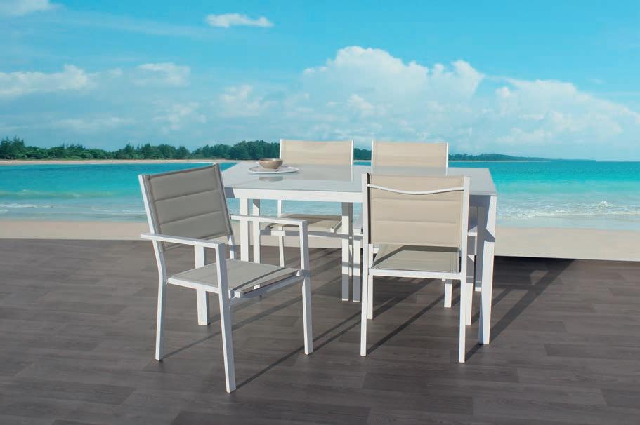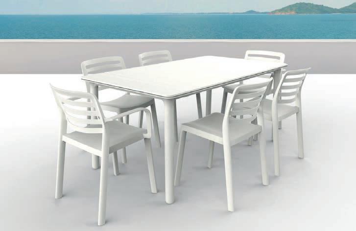Tablero de Duroboard compuesto por serrín de eucalipto certificado FSC y polipropileno reciclado, un material muy resistente a la intemperie y que no necesita mantenimiento. Patas de madera Eucalipto FSC. 170 x 100 cm. 215’00