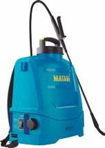 16 L. Batería de 12 V y 8 Ah. Autonomía de 7 a 10 horas. Caudal ajustable de 1.2 a 2.2 l/min. Presión variable de 0.15 a 0.4 Mpa. Peso 6.2 kg.