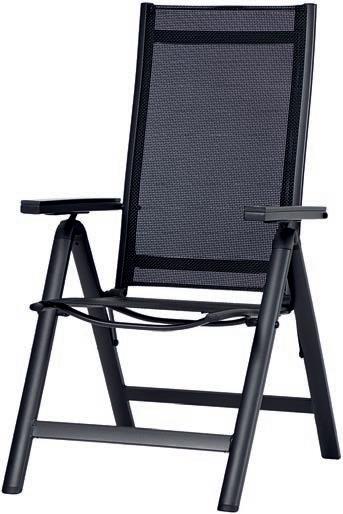 Aluminio y textilene 4x4 color negro. 58 x 66 x h110cm.Posabrazos con acabado polywood en color negro. 69’95