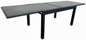 Estructura de aluminio color gris antracita con sobre cristal color gris. 140-280x90x76 cm. 259’00