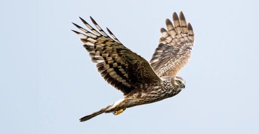 A new Hen Harrier study has shown that numbers of this striking raptor have increased from 35 to 40 pairs since 2016. The survey, led by the RSPB and funded by Natural Resources Wales (NRW), found that 95% of pairs were found on heatherdominated moorland, up from 86%. The number of Hen Harriers remained stable across the Migneint–Arenig–Dduallt Special Protection Area (SPA) in Gwynedd, while there was a promising increase of six pairs on the Berwyn SPA in Denbighshire/Powys.