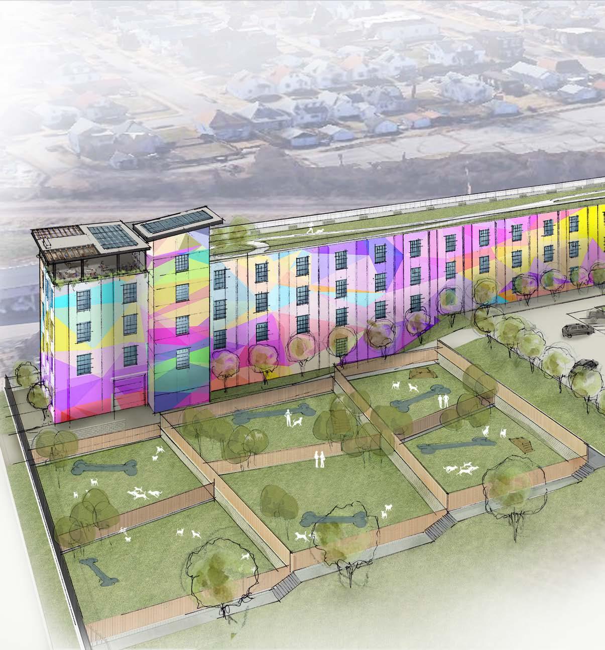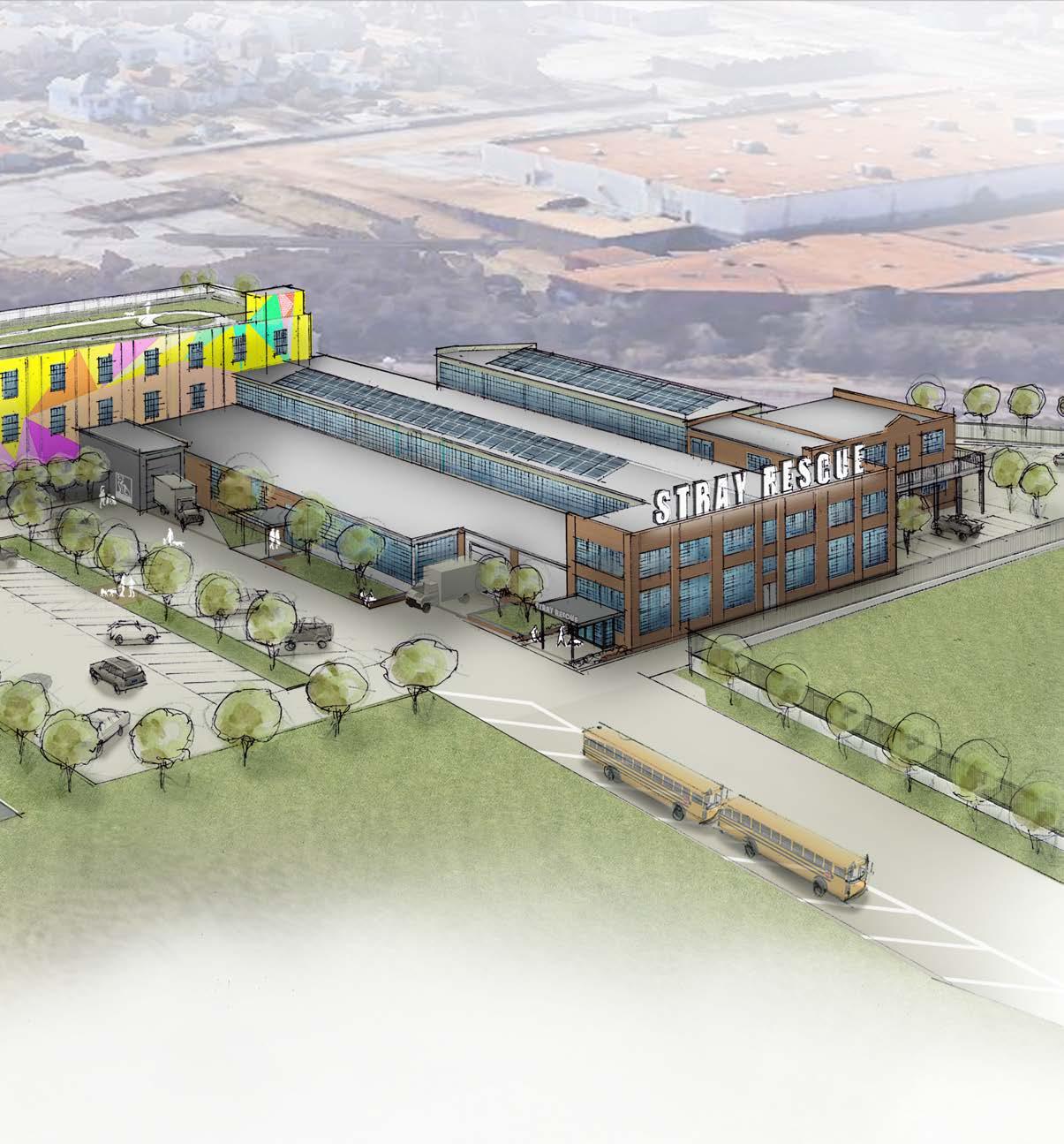 Stray Rescue hopes to create spaces that engage with the community: providing education outreach, a community vet clinic, and a rooftop memorial garden to