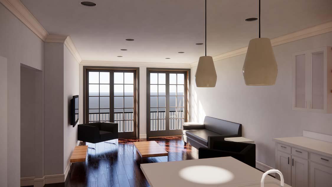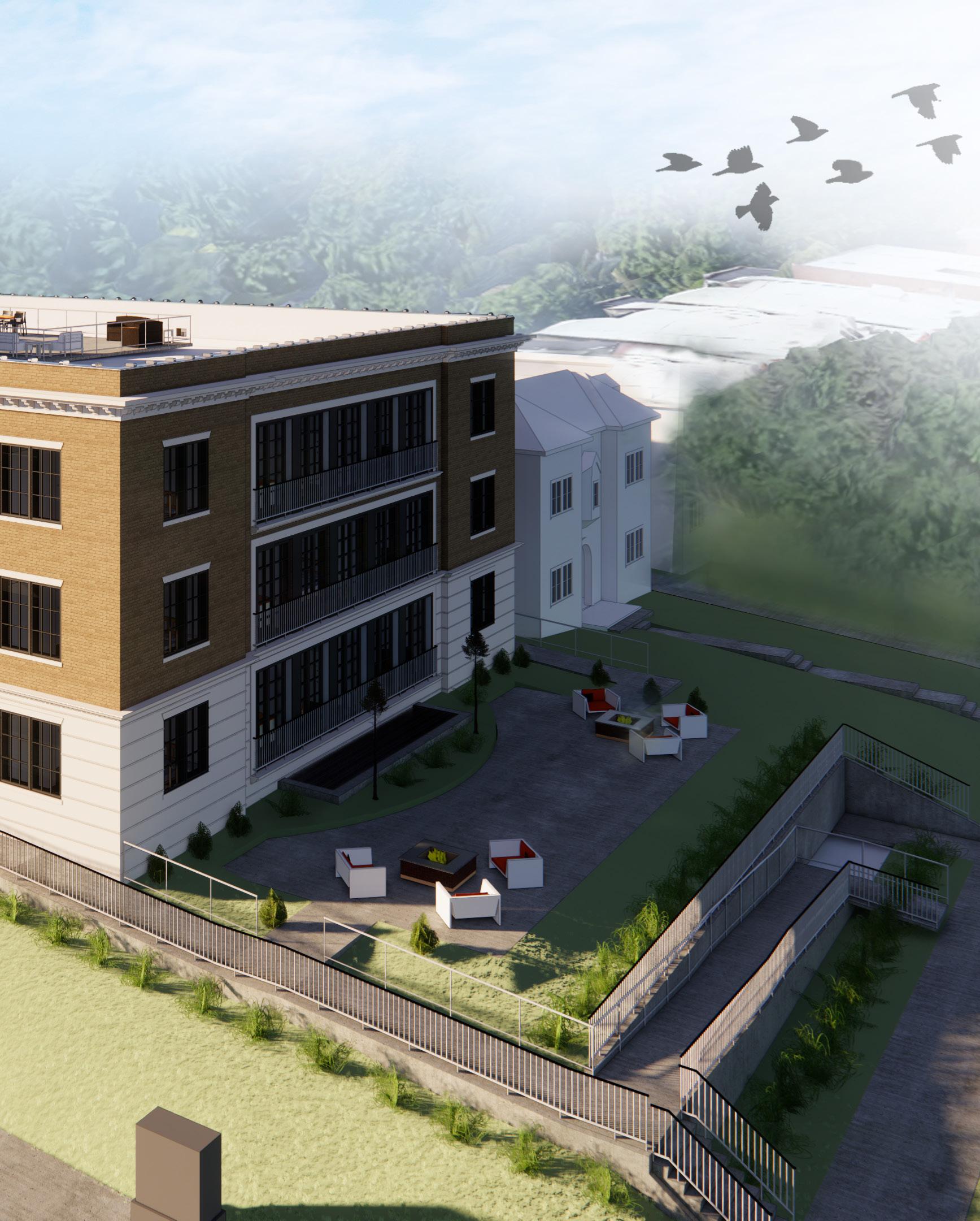 I worked with my Project Manager to develop the interior layouts, site components, and updating exterior alterations in the Revit model. I also helped work out code requirements and ADA compliance for the individual units.
