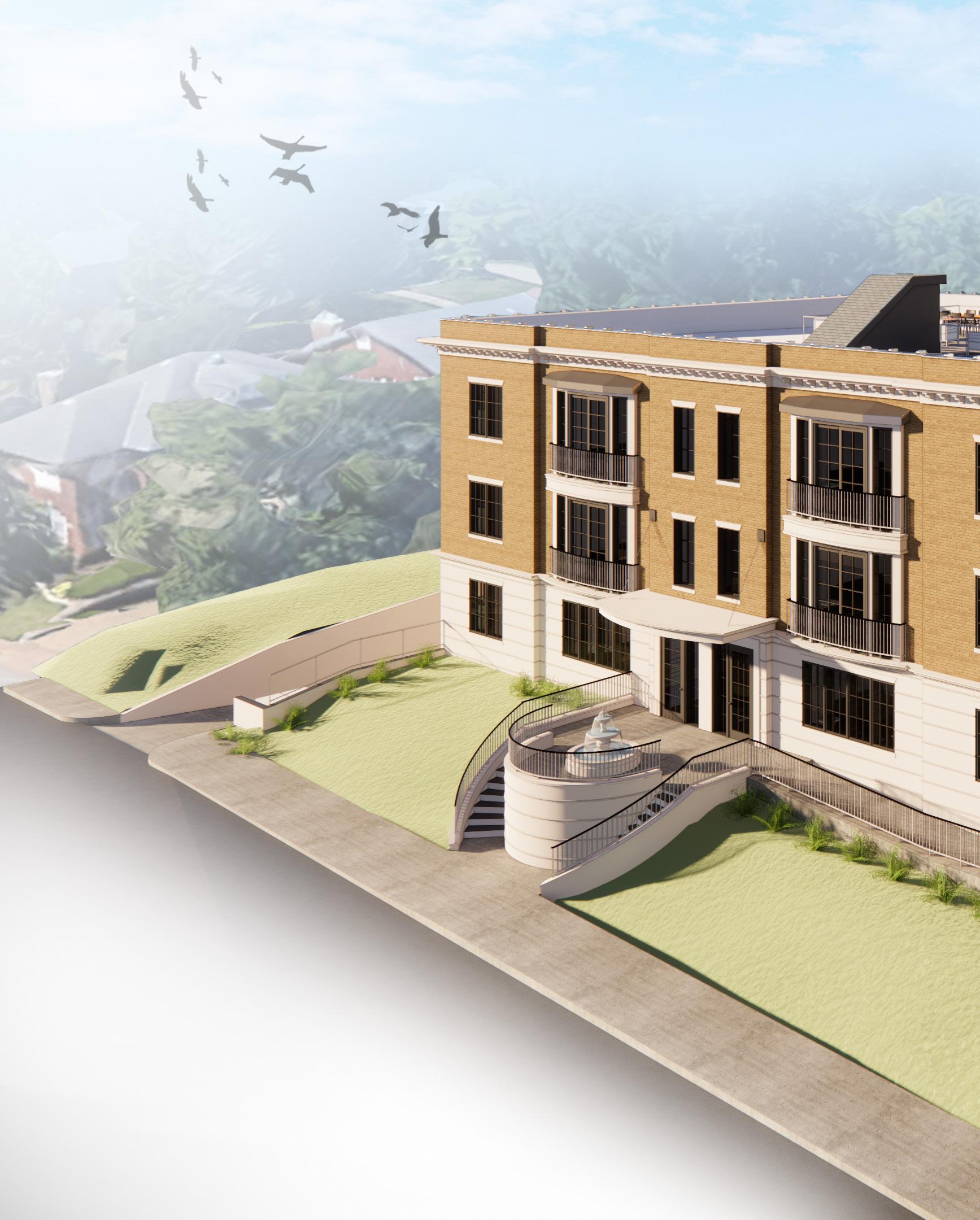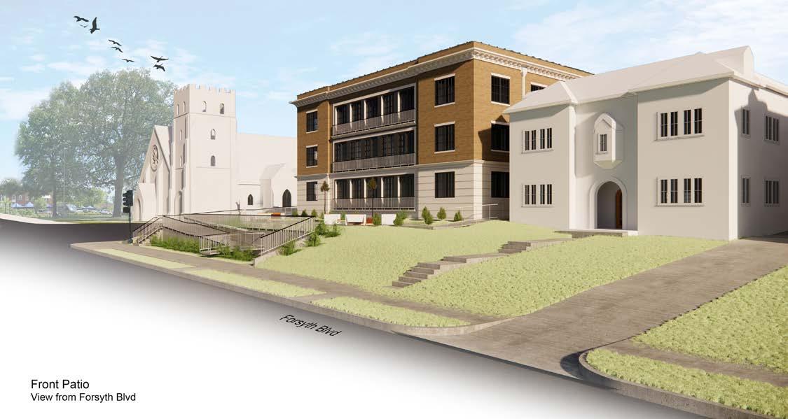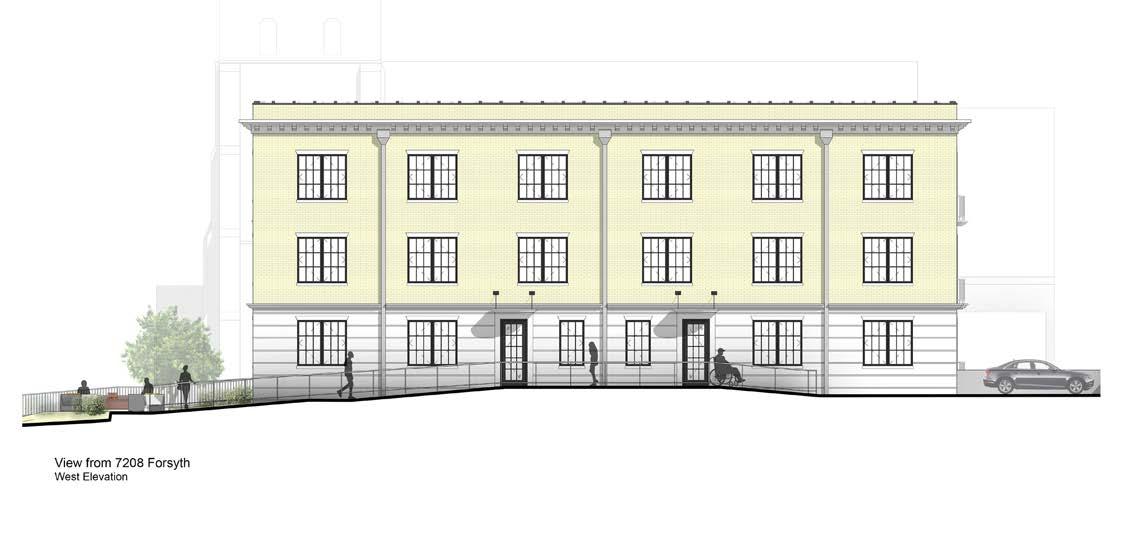 The client wanted to create housing for the local WUSTL community, focusing on mirroring the existing historic energy of the buildings along Forsyth Boulevard. Challenges were presented when working to elegantly incorporate an accessible entry as well as handling parking within the required setbacks.