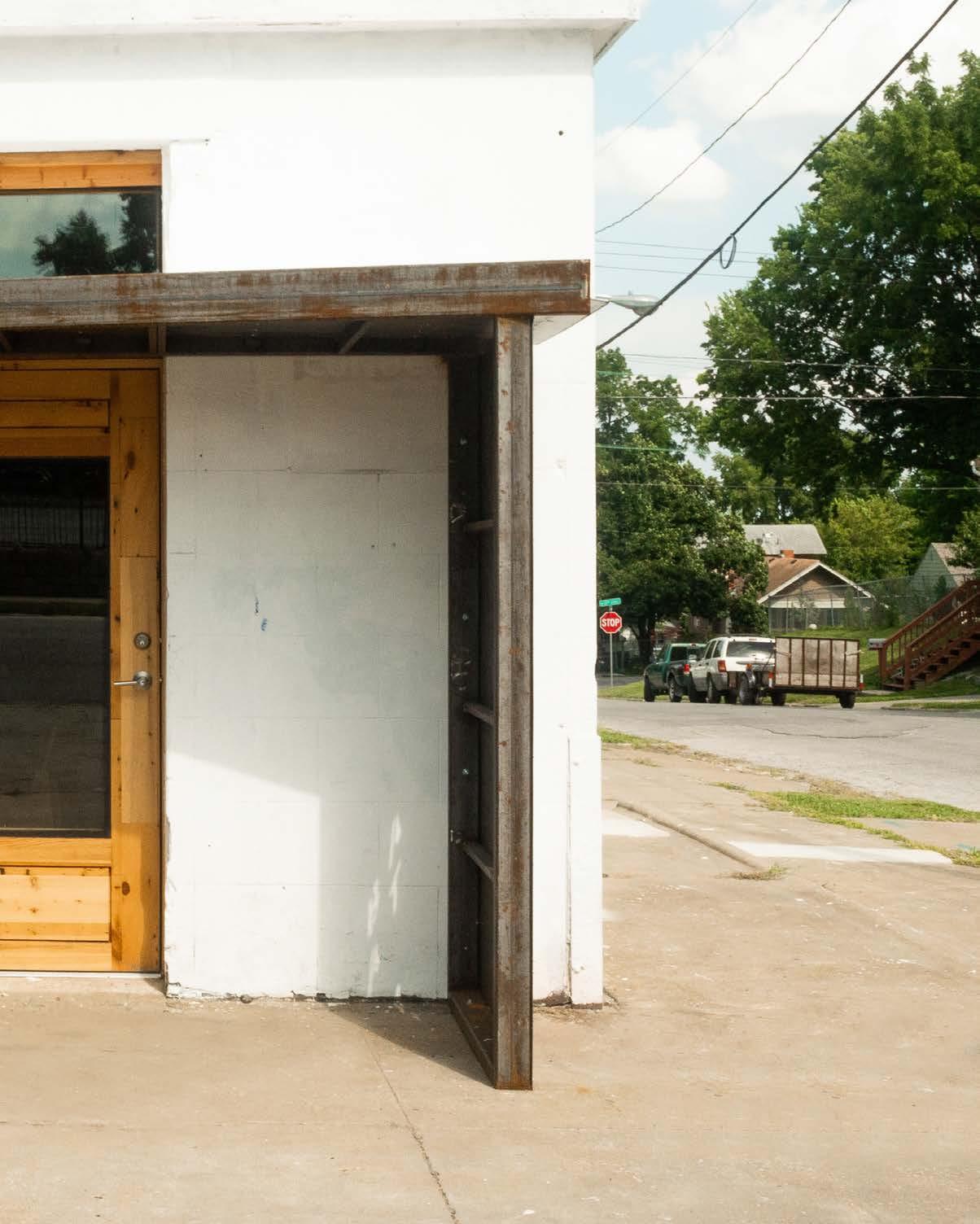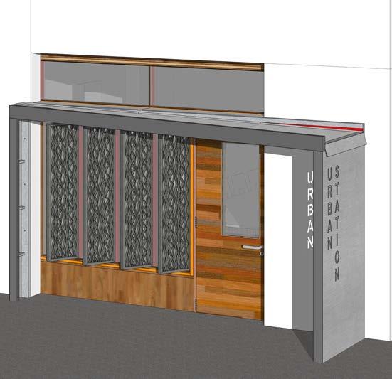 A canopy was important to include because it creates a sense of place in front of the door. The community should feel welcomed into the space. The name “Urban Station” is laser cut into the canopy to act as signage as you approach by car, as well as the shadow cast on the wall during late afternoon.