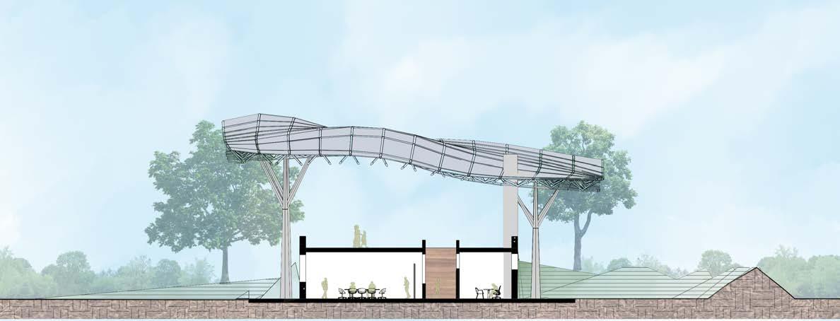 This studio demanded collaboration between all students in order to make decisions for the different parts of the larger project. I personally helped with the design development of the exterior canopy and helped create presentation materials to show the client while making design decisions.
