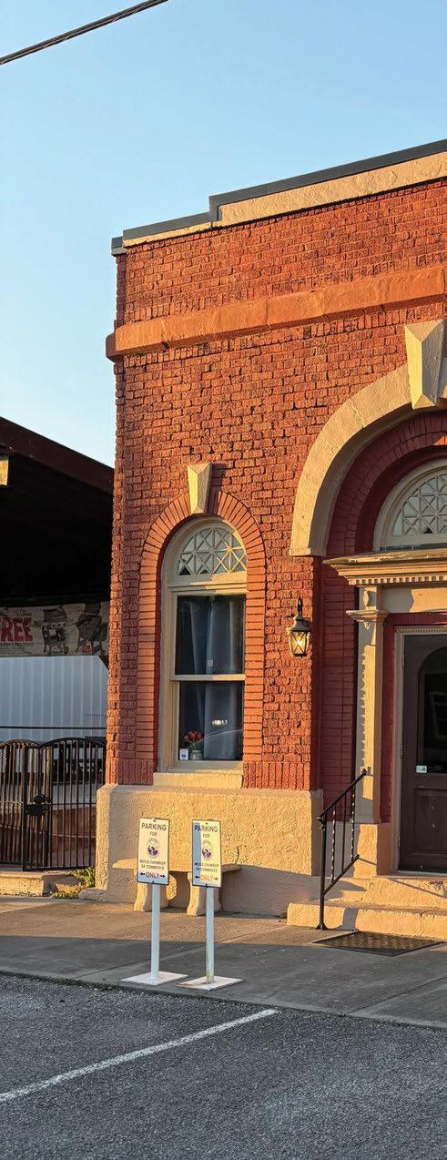 This image shows the front façade of the historic Meigs Theater building along Highway 58. A recent renovation removed a 1960s-era metal façade and revealed the historic brickwork. While this building is currently vacant, local leaders and the Meigs Theater Foundation envision the space as a future hub for arts, culture, and community gatherings in downtown Decatur.