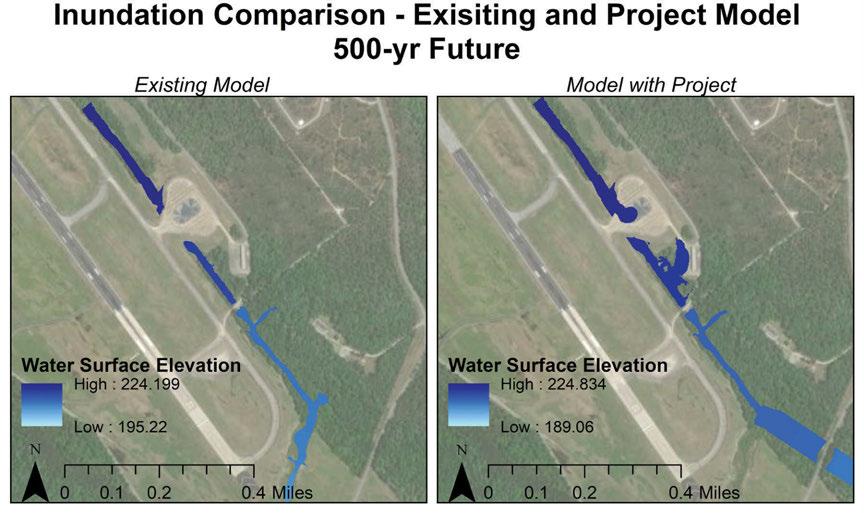 water close to the airfield that creates a hazard due to birds and other wildlife (Black & Veatch Special Projects Corp., 2024). Utilizing Engineering with Nature® principles and nature-based solutions, this project seeks to improve the functionality and resiliency of the airfield by restoring Laundry Creek to its historic path while providing enhanced ecological benefits to the surrounding environment.