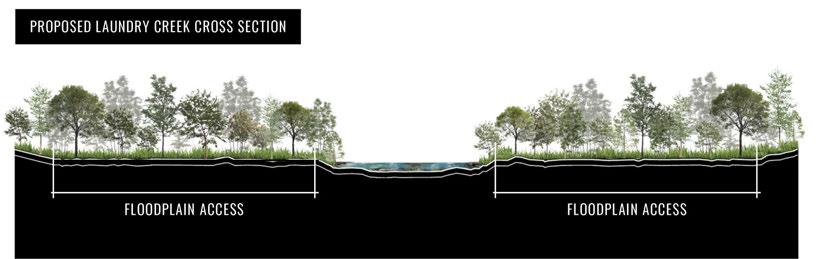 Figure 5: Conceptual rendering of Laundry Creek after new alignment that provides floodplain access with indigenous native vegetation along the streambank and floodplain.