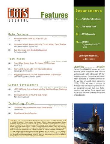Cover Story.................. Page 30 The USS Ohio (SSGN 726) is shown here on its return last year to Puget Sound Naval Shipyard and Intermediate Facility in Bremerton, WA, after completing sea trials. Ohio was the first ballistic missile submarine to complete conversion to the new class of guided missile submarines (SSGN). SSGNs will serve as platforms to develop and test new weapons systems, sensors and operational concepts that could further transform naval warfare. These payloads will include large unmanned undersea vehicles and off-board sensors.