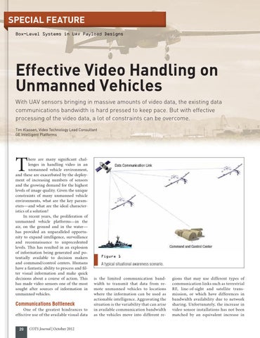 here are many significant challenges in handling video in an unmanned vehicle environment, and these are exacerbated by the deployment of increasing numbers of sensors and the growing demand for the highest levels of image quality. Given the unique constraints of many unmanned vehicle environments, what are the key parameters—and what are the ideal characteristics of a solution? In recent years, the proliferation of unmanned vehicle platforms—in the air, on the ground and in the water— has provided an unparalleled opportunity to expand intelligence, surveillance and reconnaissance to unprecedented levels. This has resulted in an explosion of information being generated and potentially available to decision makers and command/control centers. Humans have a fantastic ability to process and filter visual information and make quick decisions about a course of action. This has made video sensors one of the most sought after sources of information in unmanned vehicles.