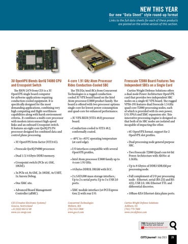 Our new “Data Sheet” style round-up format Links to the full data sheets for each of these products are posted on the online version of this section.