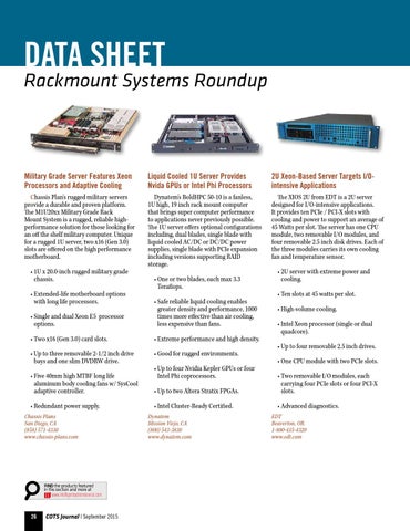 • 1U x 20.0-inch rugged military grade chassis. • Extended-life motherboard options with long life processors.