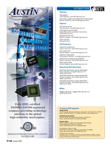 To Contact RTC magazine: HOME OFFICE The RTC Group, 905 Calle Amanecer, Suite 250, San Clemente, CA 92673 Phone: (949) 226-2000 Fax: (949) 226-2050, www.rtcgroup.com EASTERN SALES OFFICE The RTC Group, 96 Dudley Road, Sudbury, MA 01776 Phone: (978) 443-2402 Fax: (978) 443-4844 Editorial Office Warren Andrews, Editorial Director/Associate Publisher 39 Southport Cove, Bonita, FL 34134 Phone: (239) 992-4537 Fax: (239) 992-2396 Tom Williams, Editor-in-Chief 245-M Mt. Hermon Rd., PMB#F, Scotts Valley, CA 95066 Phone: (831) 335-1509 Fax: (408) 904-7214 Published by The RTC Group Copyright 2008, The RTC Group. Printed in the United States. All rights reserved. All related graphics are trademarks of The RTC Group. All other brand and product names are the property of their holders.