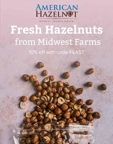 The American Hazelnut Company, Viroqua, Wisc., is a leader in this nascent upcycled food industry. Every bit of their hazelnuts is put to delicious use. Smaller and more flavorful than those shipped in from the West Coast, Europe and Turkey, their Midwest-grown hazelnuts are great for snacking, baking and garnishing cocktails. American Hazelnut also coldpresses their nuts into a golden culinary oil with a smoke point that’s higher than virgin olive oil and loaded with omega 3’s and vitamins. What’s left after pressing is ground into a high-protein, gluten-free flour, so nothing is wasted.