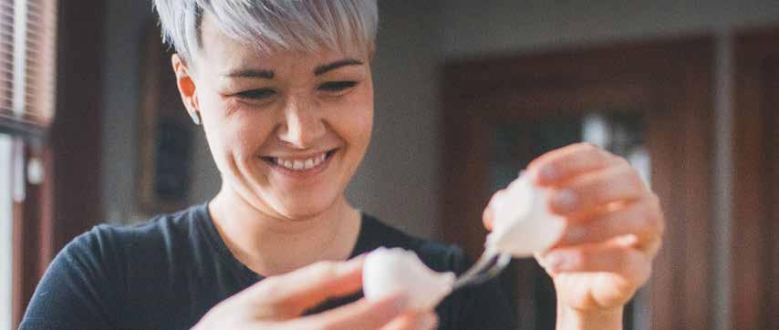 sweet and savory scones—made with spent ingredients including cornmeal, rye, barley, and orange peels. Don’t miss her spicy pulled pork on soft buns made with spent wild rice flour (from upcycled wild rice beer).