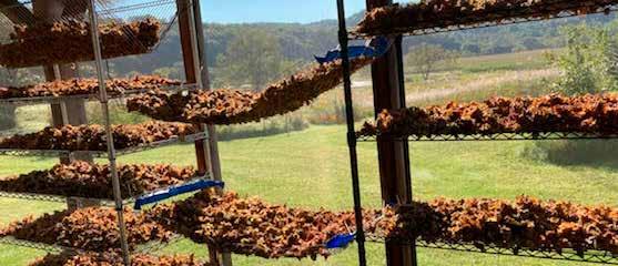 Midwest-grown hazelnuts drying after harvest (above).