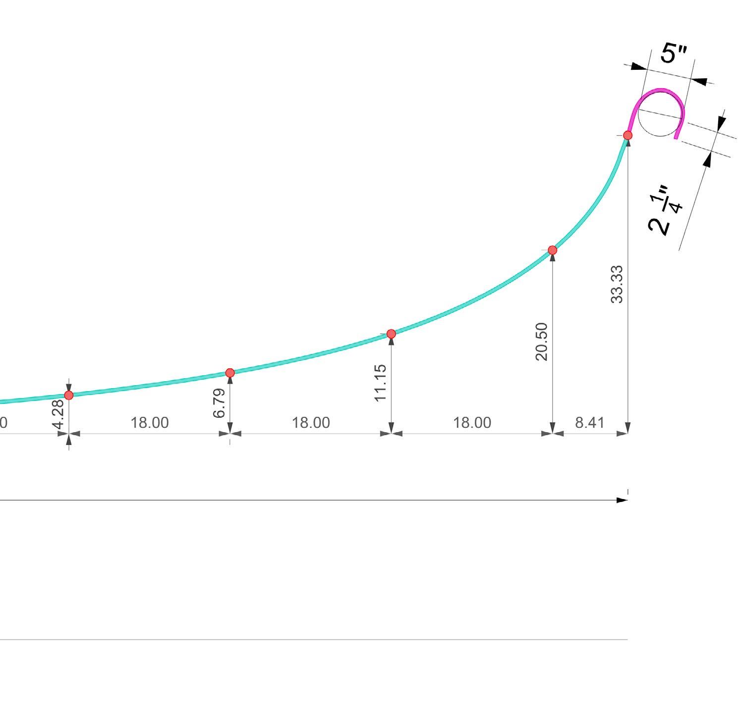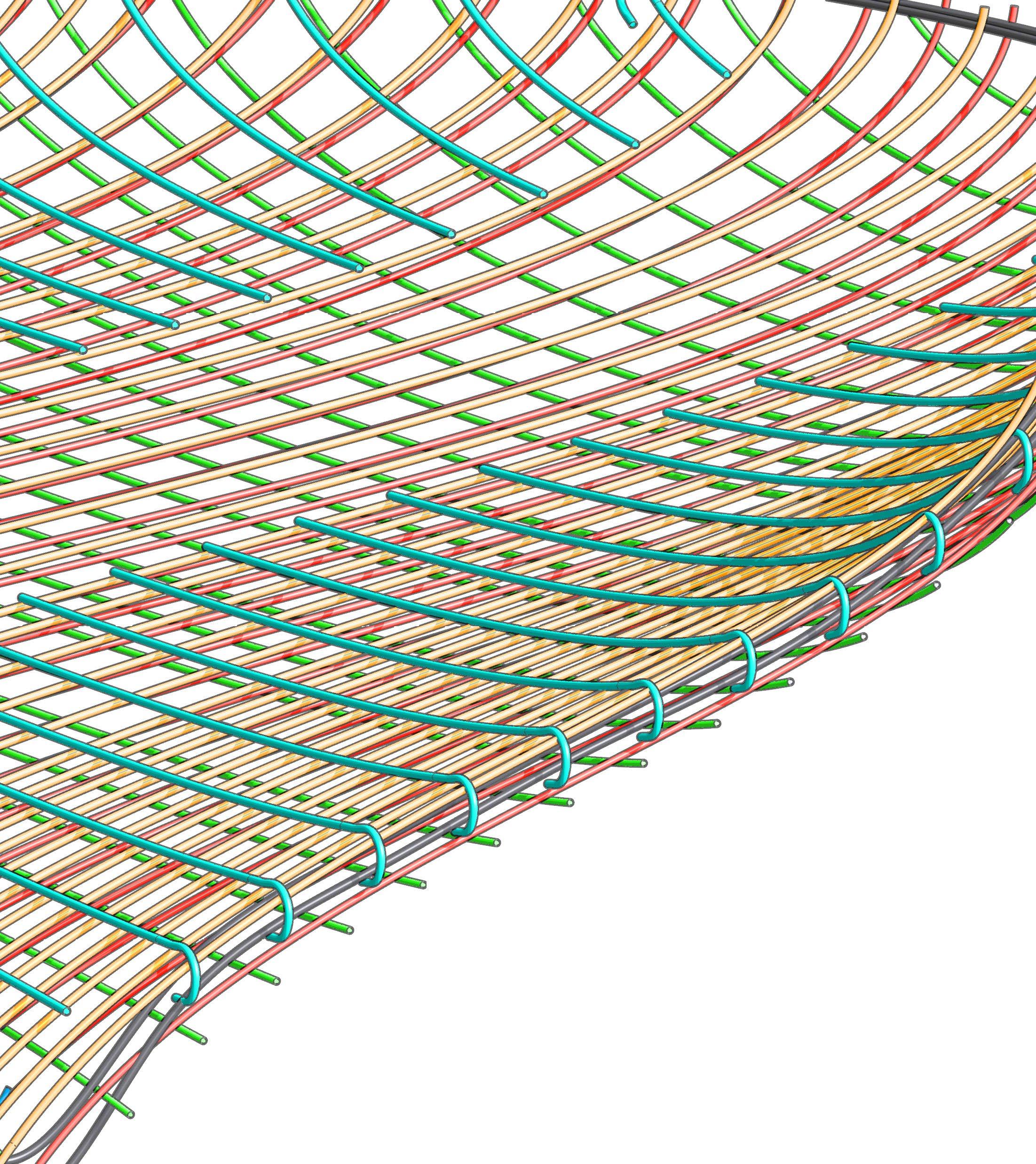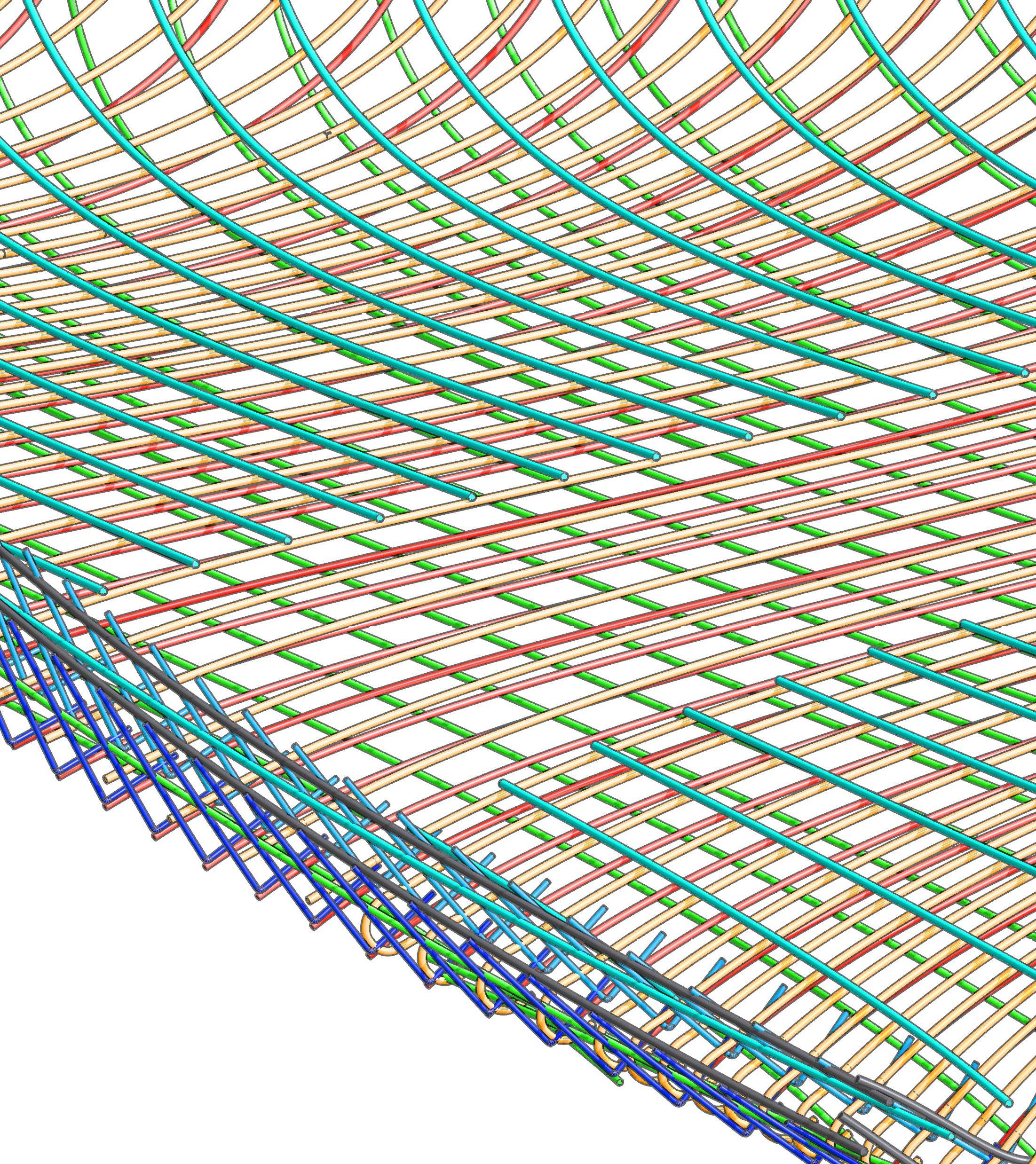 With several hundred uniquely curved rebar profiles involved in its construction, I developed a parametric tool to three dimensionally understand the underlying structure and two dimensionally generate shop drawings that tagged, dimensioned, and approximated each of the individual profiles.