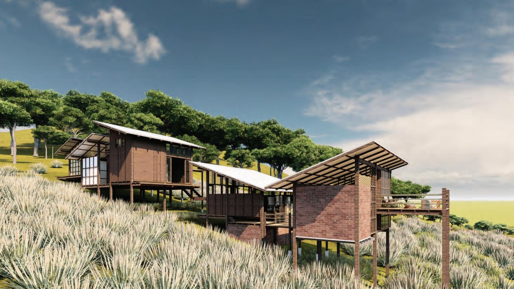 เสนโคงและวงกลมมาออกแบบในทั้งสวนของผังโครงการและตัวหองพักที่เชื่อมตอกัน