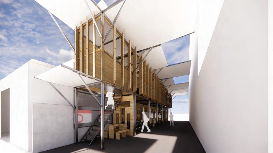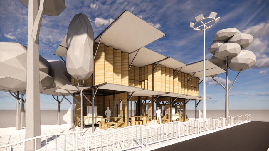 สวนใจกลางที่เปดรับกับพื้นที่ตลาดนัดของโครงการไปจนถึงถนน