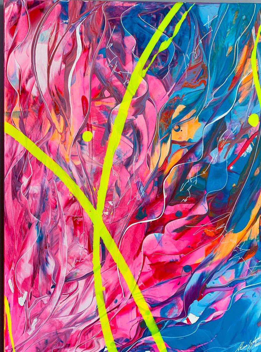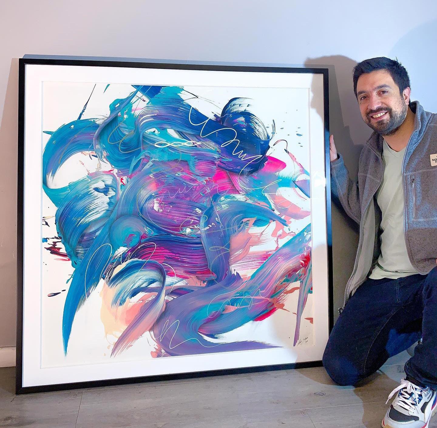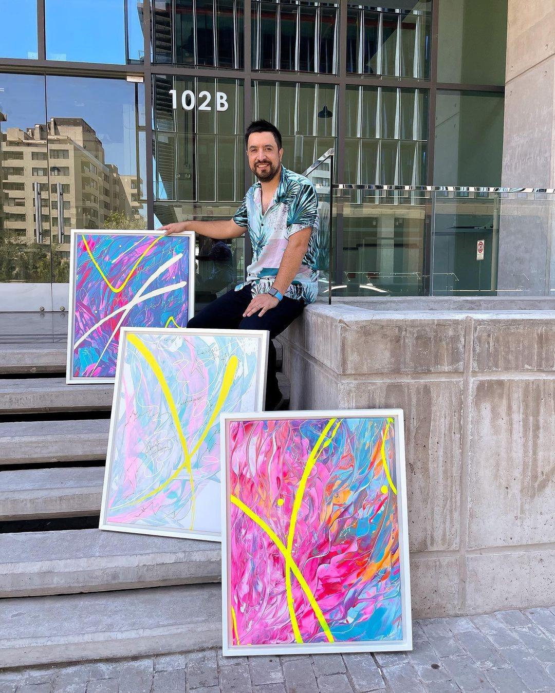 "Yo venía pintando hace mucho tiempo pero nunca mostré el trabajo en redes sociales ni nada, siempre era a los familiares, pero en ese período empecé a subir fotos de lo que estaba haciendo y a la gente le gustó, les llamó la atención, me así me empezaron a invitar, a través del Instagram, a algunas pocas exposiciones. La primera fue una en Milano y tuve que enviar las obras en formato dig ital para que fueran expuestas en pantallas, después des cubrí Southtrip art Gallery y así pude exhibir mis obras en Nueva York, una experiencia fantástica. Nunca me imag iné exponer mis obras en el exterior, para nada, y creo que me ha ido bien porque sigo pintando por gusto, por pasión, porque me entretiene, me llena, me saca de mi día a día, porque aún no lo veo como un negocio y eso me da libertad para expresar lo que realmente siento en la tela. El que alguien tenga un trabajo mío en su hogar es una sensación inexplicable", resume Arturo.