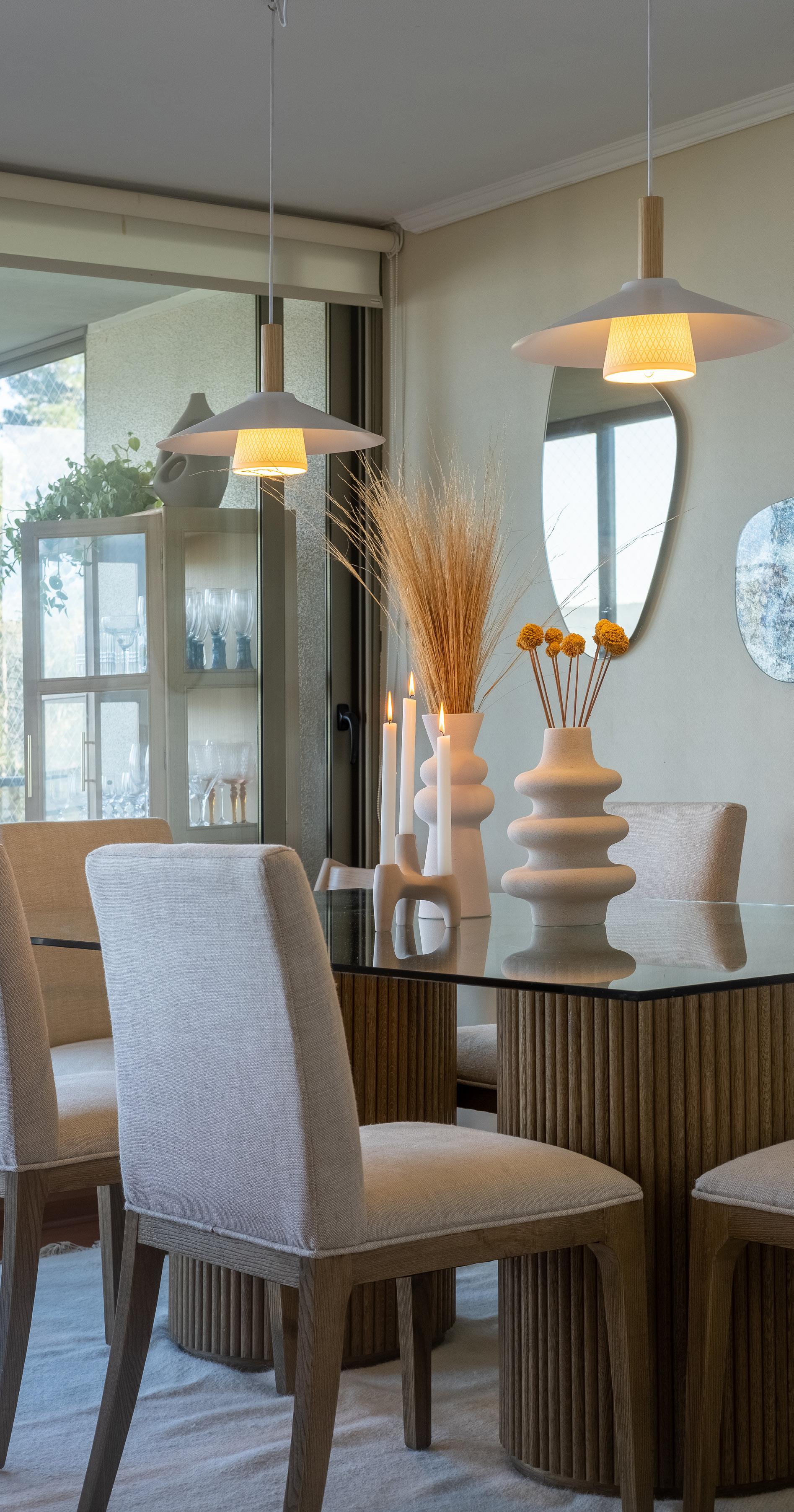 Para este departamento, el encargo fue equipar living, comedor y terraza. La idea era lograr un espacio integral para estos tres recintos, que invitara a la informalidad, la calidez y el descanso, para estar en familia, leer, jugar y compartir en general.
