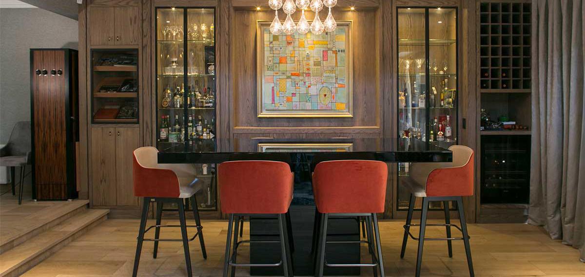 “Para lograr un equilibrio, y lograr un espacio que también fuera cálido, elegante y muy distinguido, complementamos con materiales nobles, madera y piedra, que siempre están presentes cuando quieres trabajar con estos conceptos. En general, cuando usas materiales nobles, te vas a la segura de que tu espacio se vea absolutamente sensual”, asegura Francesca.