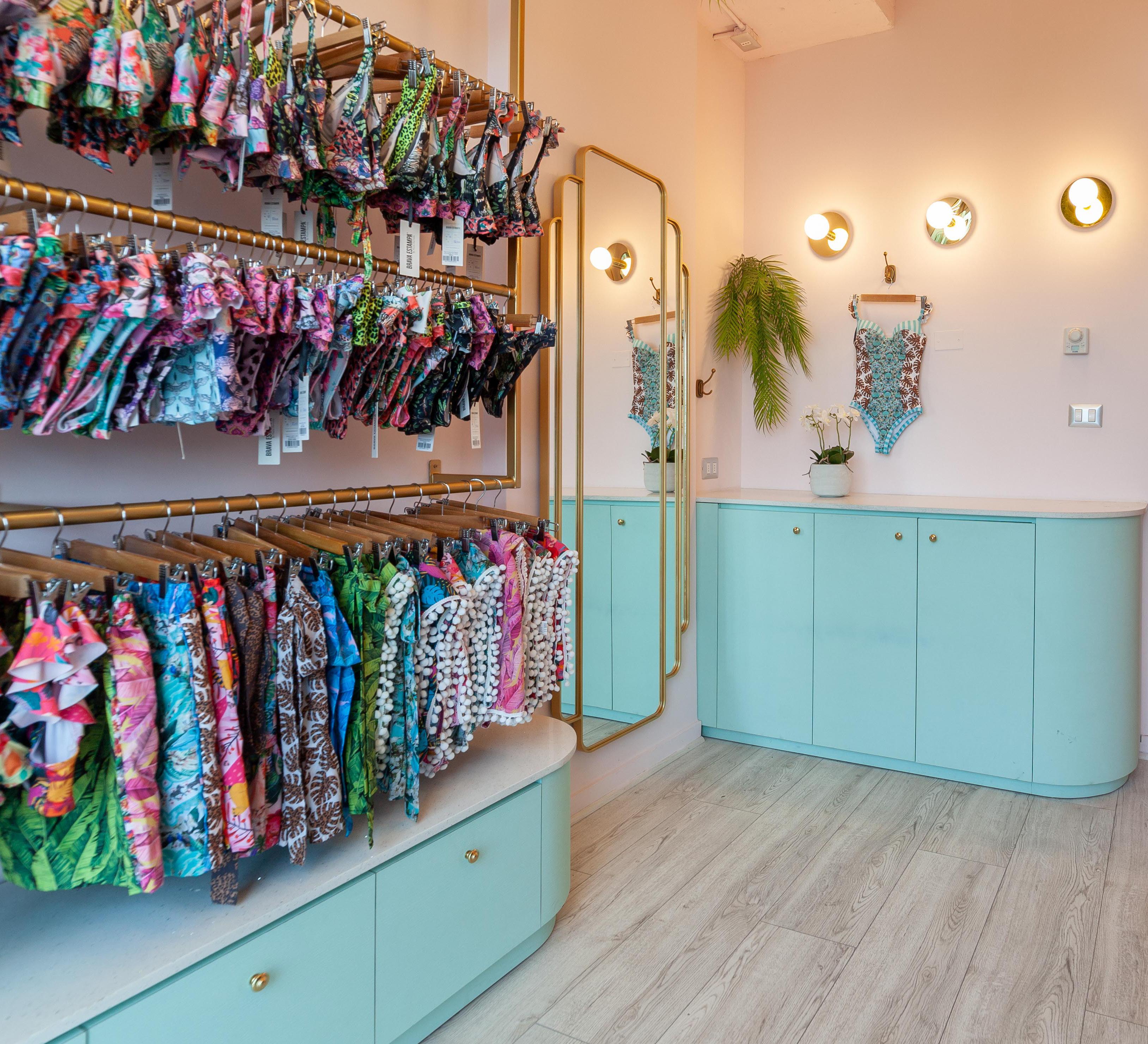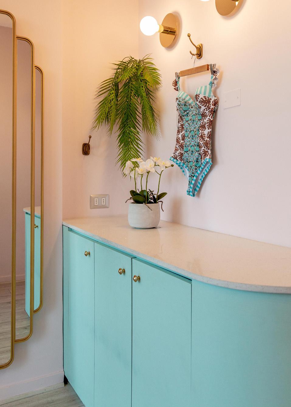 “Para este proyecto el encargo fue un desafío súper entre tenido. Nuestra clienta topísima, dueña y creadora de la marca Brava Estampa, nos pide remodelar su tienda de 24 m2 y darle un nuevo aire, para poder volver a atender a sus clientas en plena pandemia. Ella buscaba de cierta forma regalonear a sus clientas, recibiéndolas nuevamente en un espacio fresco, femenino y lleno de vida. Lo primero que nos dijo fue: - Quiero que sea como estar en Miami en los años 40! Y así fue, nos sumergimos en lo que significó el movimiento Art Decó como consecuencia de la post guerra, con estos edificios coloridos, alegres, llenos de luces y det alles lo que nos hizo mucho sentido”, nos parte contando Francesca sobre esta divertida propuesta en la capital.