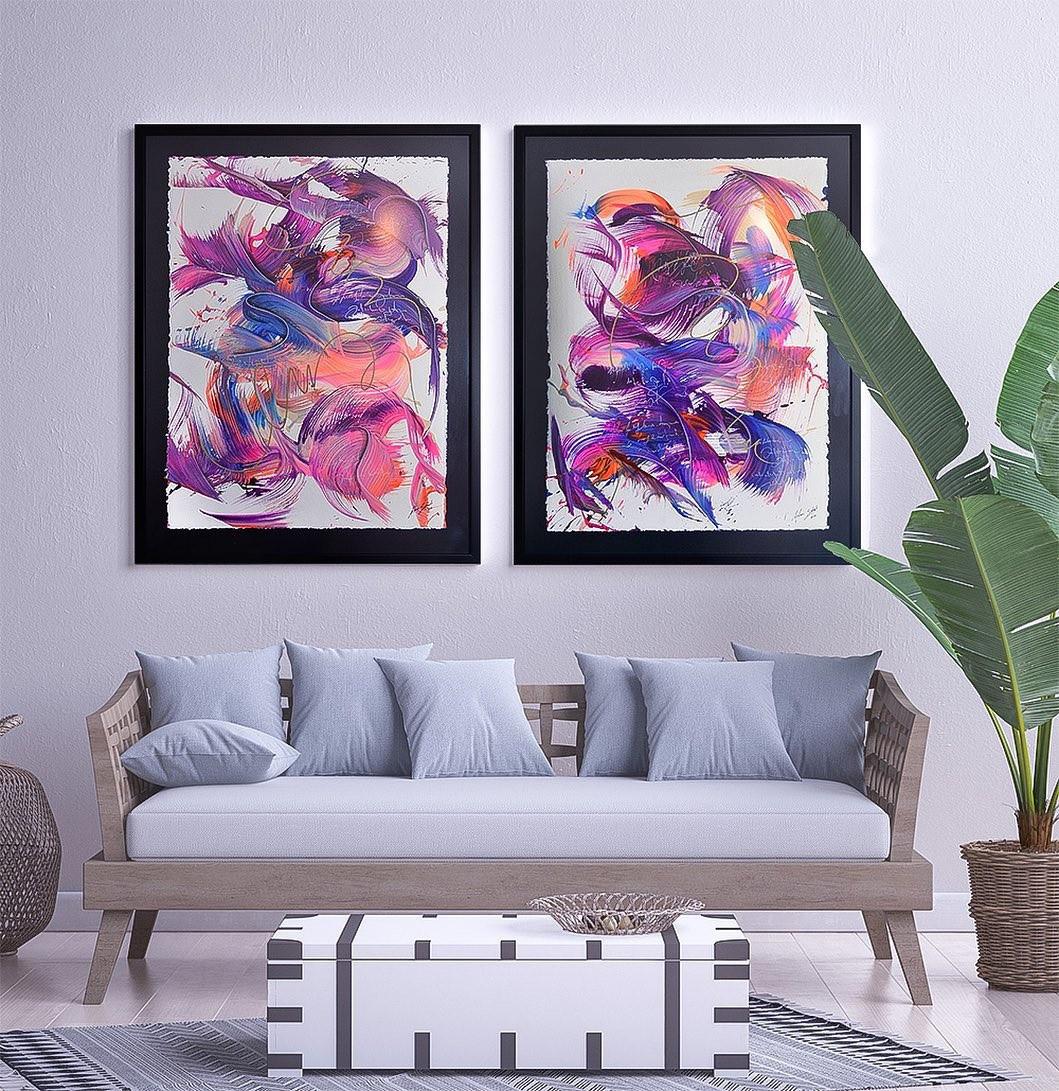 acrilicos sobre papel texturado Enmarcado en fondo blanco y marco negro