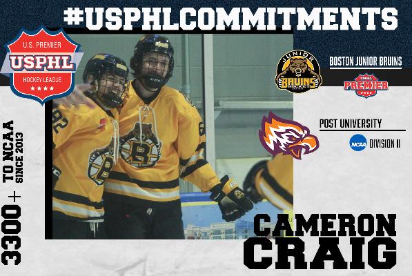 Boston Jr. Bruins defenseman Cameron Craig has committed to Post University (NCAA Division II) for the fall of 2023.