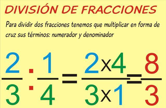 Multiplicar el numerador de la primera fracción por el denominador de la segunda fracción y el resultado de la multiplicación corresponde al numerador del resultado, por otra parte, para obtener el resultado del denominador se debe multiplicar el denominador de la primera fracción por el numerador de la segunda fracción.