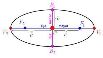 Coordenadas vértice eje mayor: Coordenadas vértice eje menor: (a,0) (-a,0) (0,b) (0,-b)