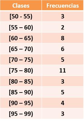 La recolección de datos se realiza en una tabla de datos de frecuencias