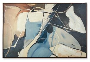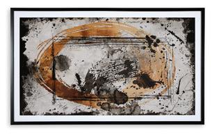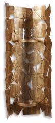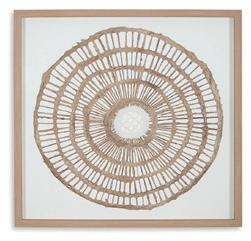 Wall sculpture. Brown paper in geometric design under acrylic. Wood frame with brown finish. D-ring bracket for hanging. Due to the use of natural materials, some variations may occur.